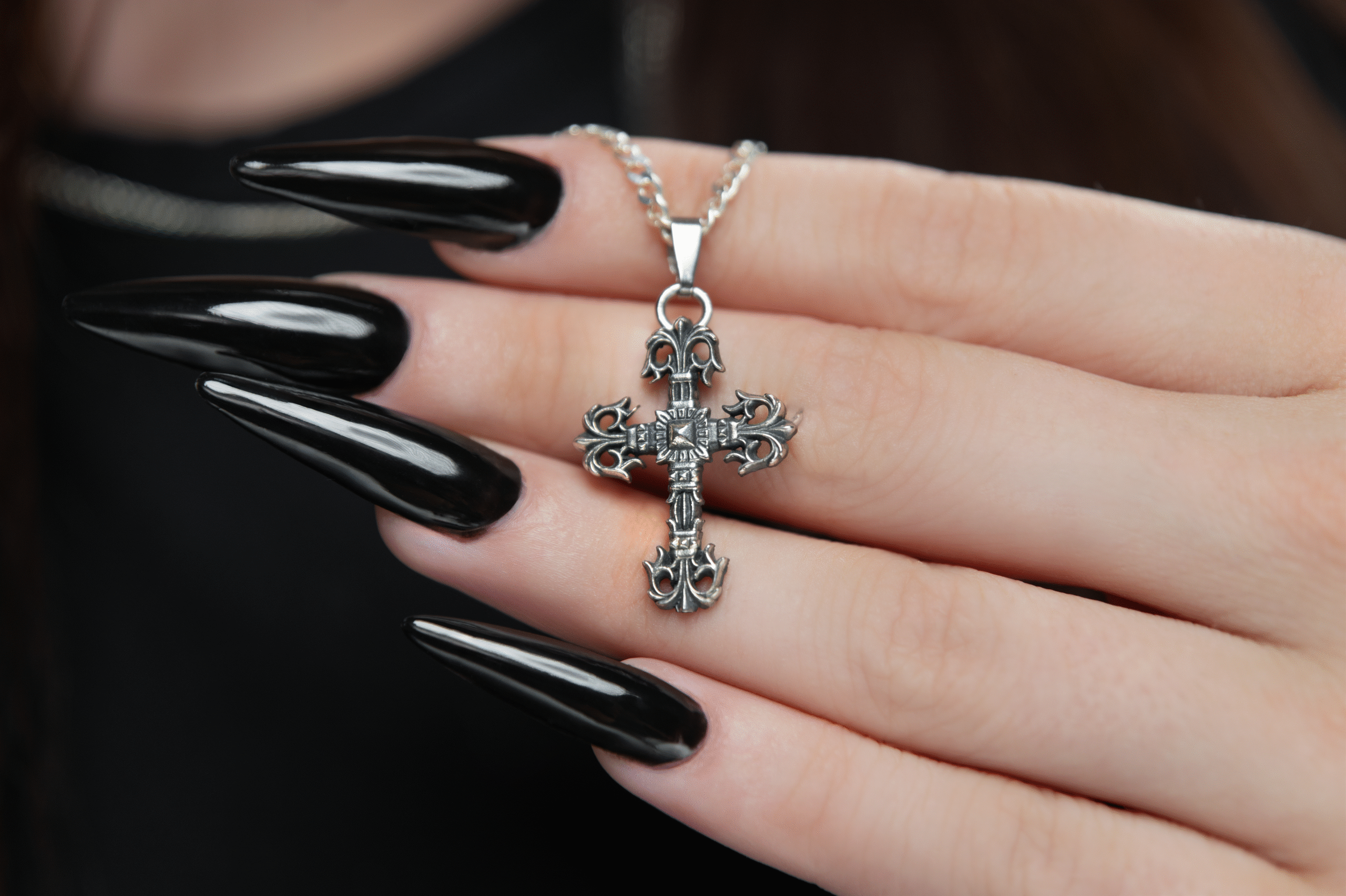 Make an impactful statement with the Unisex Sterling Silver 925 Gothic Cross Pendant. This necklace is a masterpiece of dark elegance, perfect for those who embrace alternative fashion and gothic jewellery aesthetics.