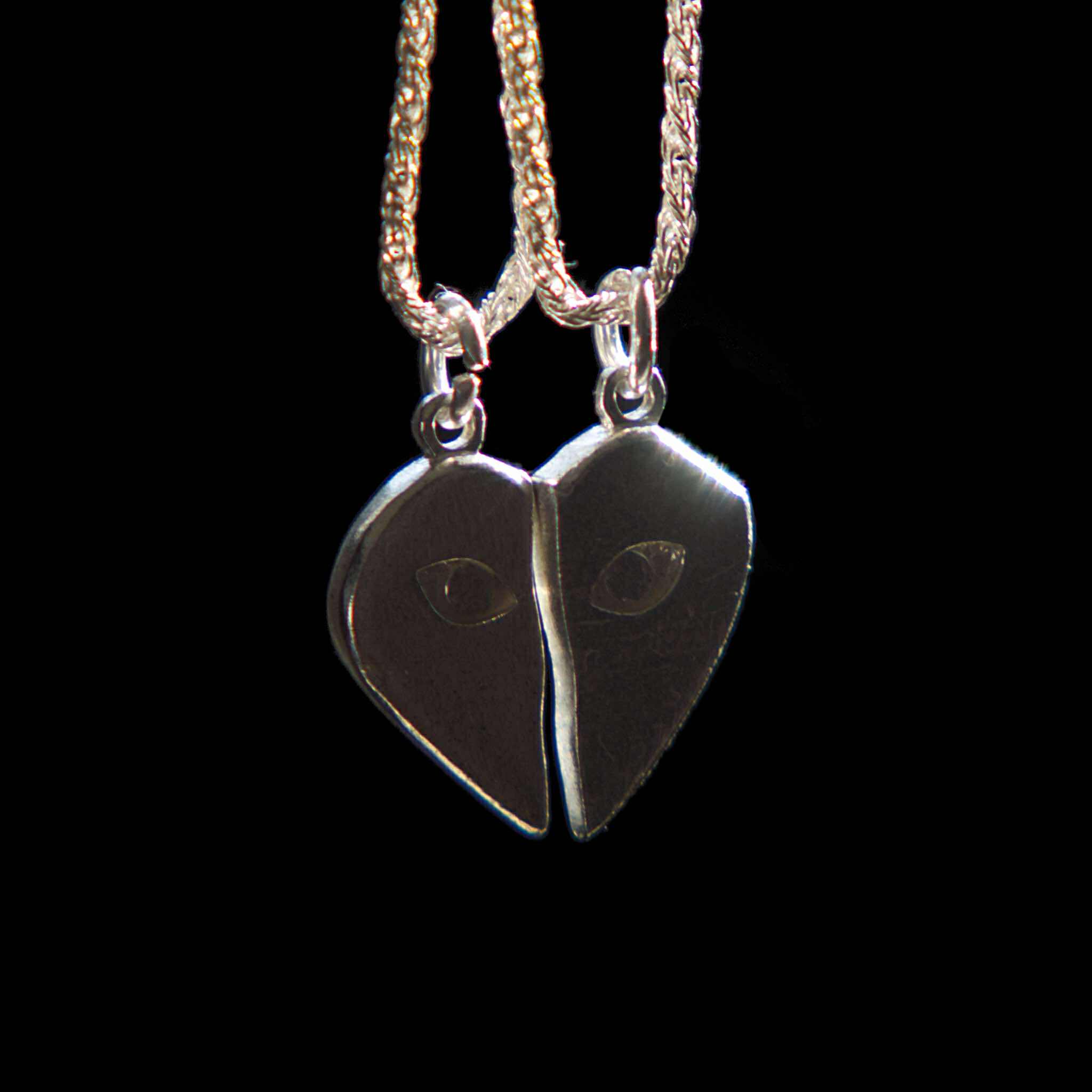 The clean geometry and subtle surface texture give the necklace a modern, understated character, while the solid silver construction provides a satisfying weight and long-lasting durability. Worn together, the two halves represent a bond that feels natural, complete, and deeply personal.